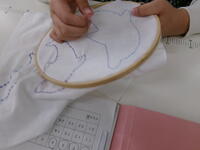 2月5日 中学部は毎週火曜日と木曜日の午前中に2時間連続で作業学習に取り組んでいます。そっと様子を覗くとどの作業班も集中して作業に取り組んでいました。写真は、縫製班の花布きんを作っているところです。印のとおりに刺し子のランニングステッチで模様を描いていきます。ハンガーに毛糸を結び付けハンガーモップを作る作業をしていた生徒も1学期に比べるととても速く正確にできるようになっていました。どの生徒も、自信をもって取り組んでいます。
