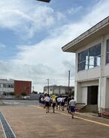 9月26日 今日は昨日より気温が高いですが、熱中症指数は29だったため中学部と小学部高学年は朝体育を校庭で行いました。自分のペースで歩いたり走ったりして気持ちの良い汗を流していました。写真は中学部。