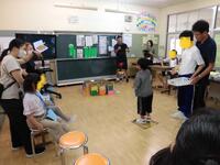 小学部高学年のなつまつりでした。それぞれのクラスで、空気砲や缶つみ、輪投げなどの遊びや景品を作って、店番や遊びを交代でしたり、招待者をもてなしたりしました。楽しかったことをインタビューしたところ「輪投げが楽しかった」「ヨーヨー釣りをした、お店当番もした」など思い思いの答えがそれぞれの方法で返ってきました。